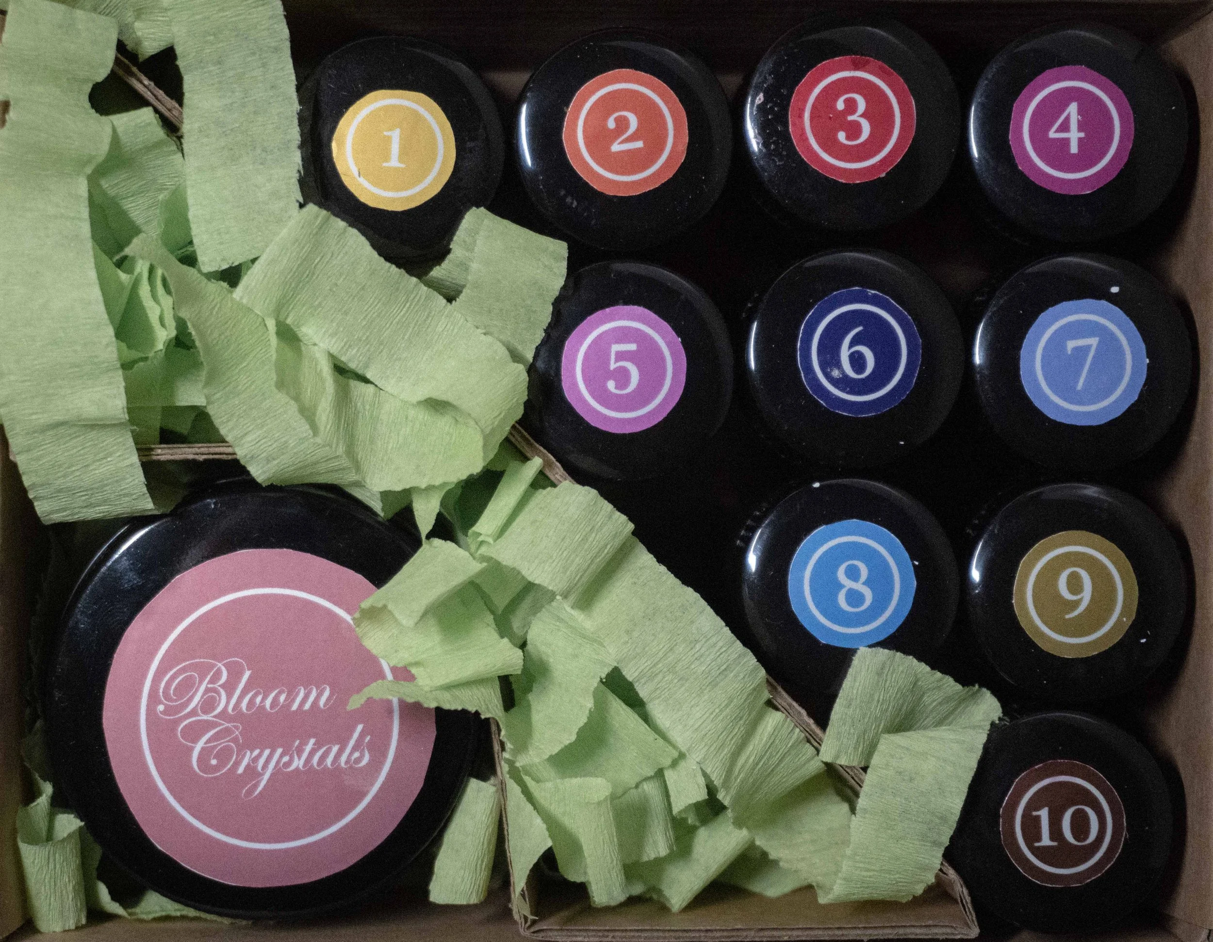 The set includes ten unique colors and a small jar of “Bloom Crystals”, citric acid powder that reacts with the dyes to create bright red, blooming patterns on paper. This reaction became a key visual element in my design process and inspired a promotional poster showing how the colors can be used creatively in graphic design.